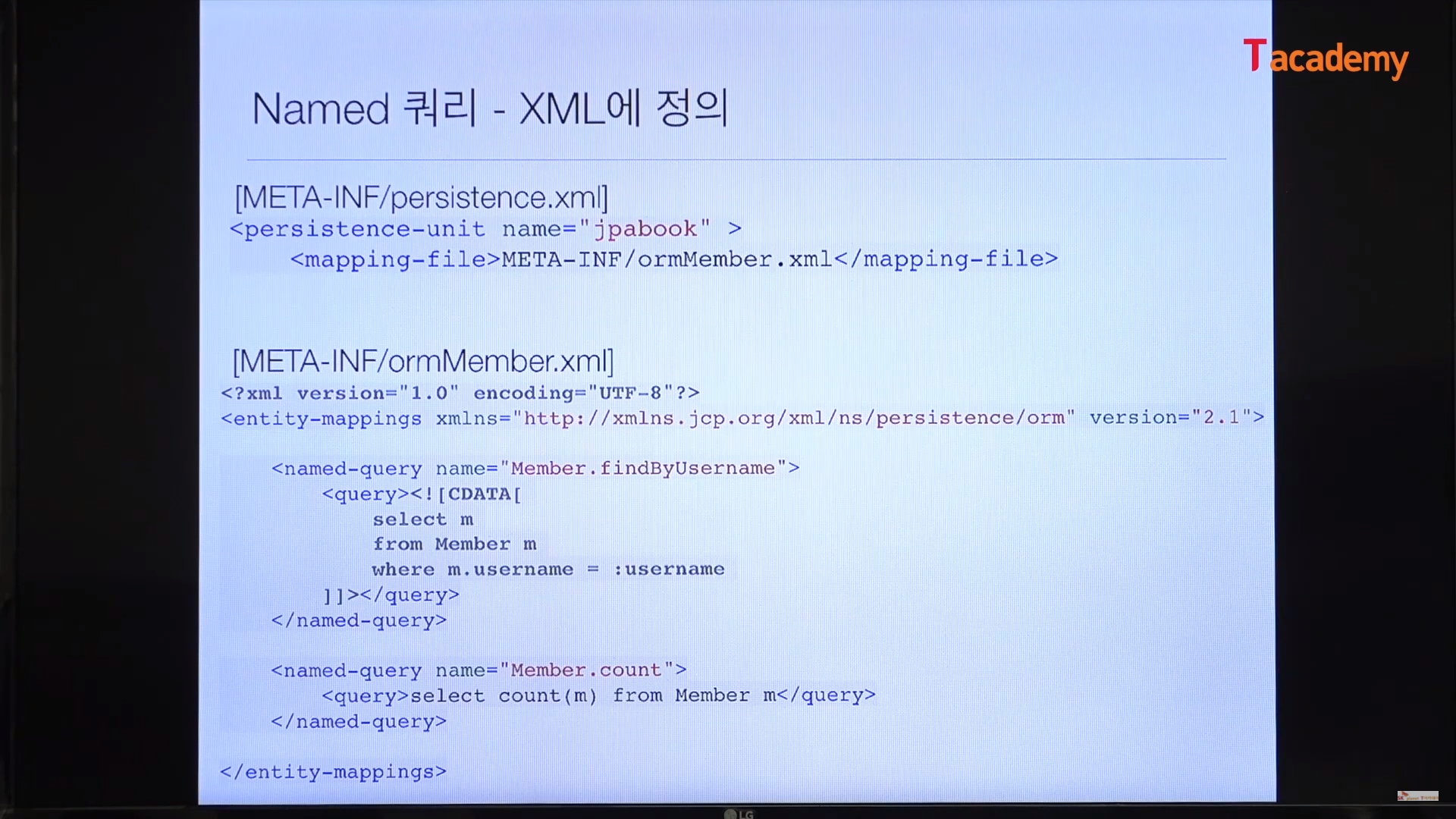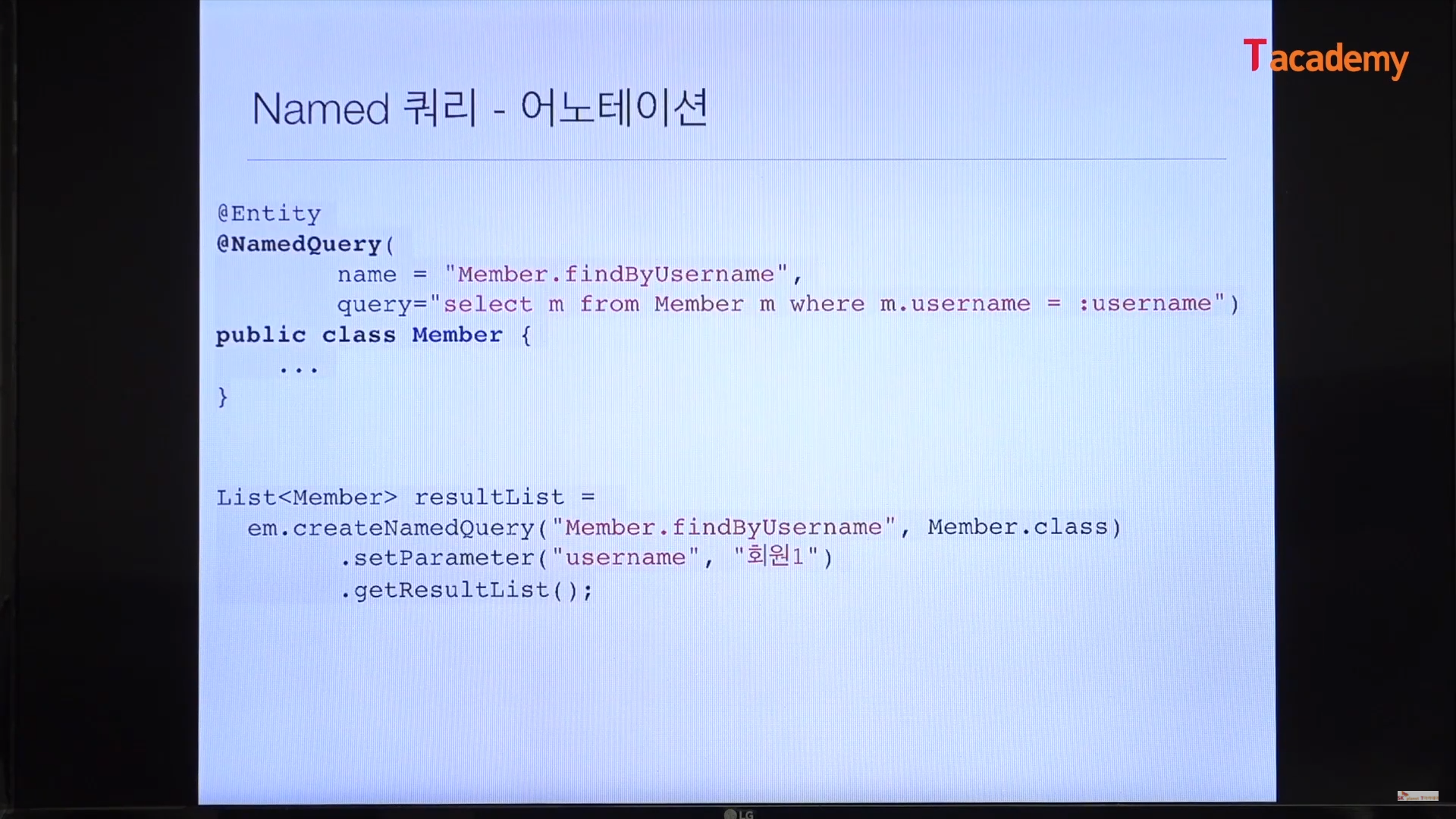 - 엔티티 이름을 사용. 테이블 이름이 아님.